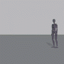 Tilded head Slow and small steps, steady & symmetrical movement of hands and legs which close to the body and straight torso, upper body isnt moving, weight is in the back, no sudden movements